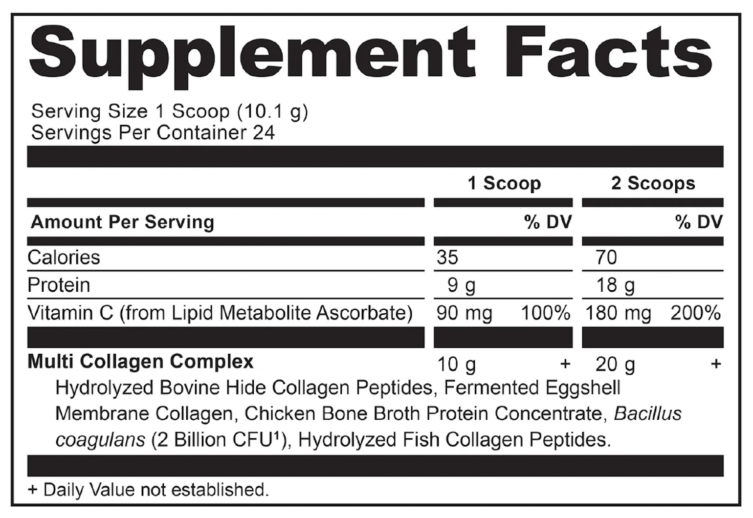 - Includes 10 types of collagen from 4 sources