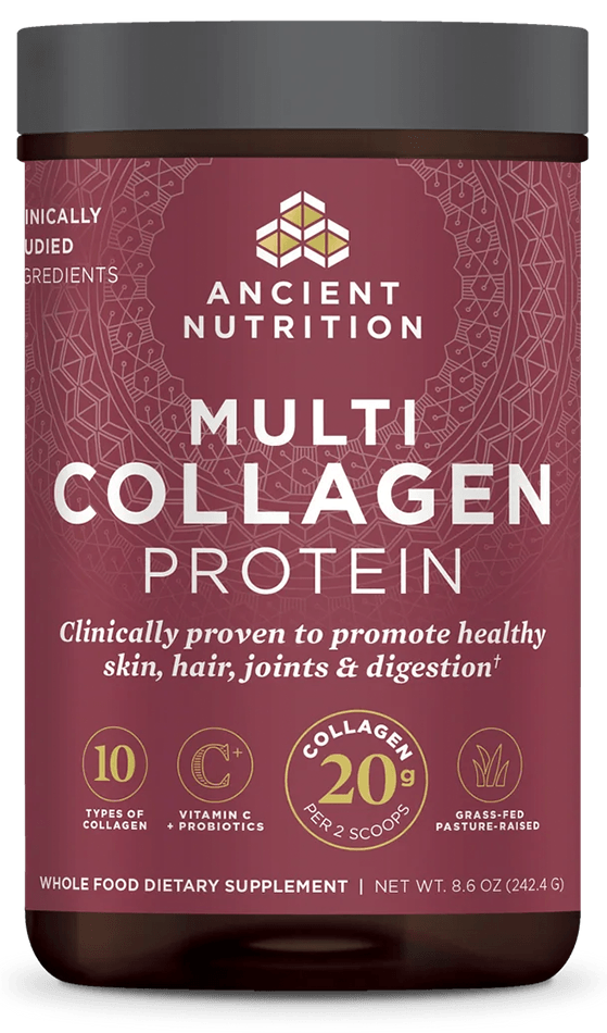 "Ancient Nutrition’s Multi Collagen Protein peptides delivers what I look for as a dietitian: 20 grams of collagen per 2 scoops, including grass-fed and 10 types of collagen, plus probiotics and vitamin C for added support.